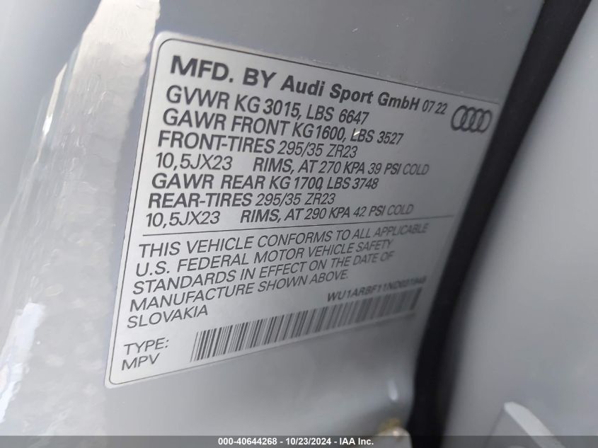 2022 AUDI RS Q8 | WU1ARBF11ND031945