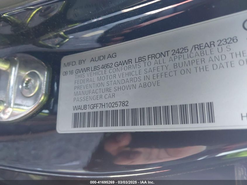 2017 AUDI S3 | WAUB1GFF7H1025782