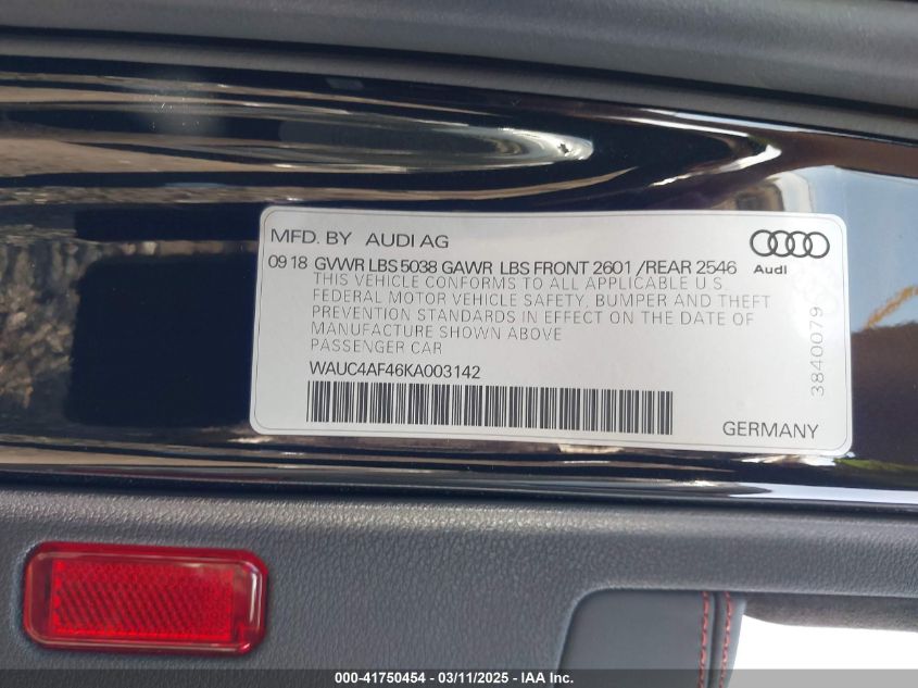 2019 AUDI S4 | WAUC4AF46KA003142
