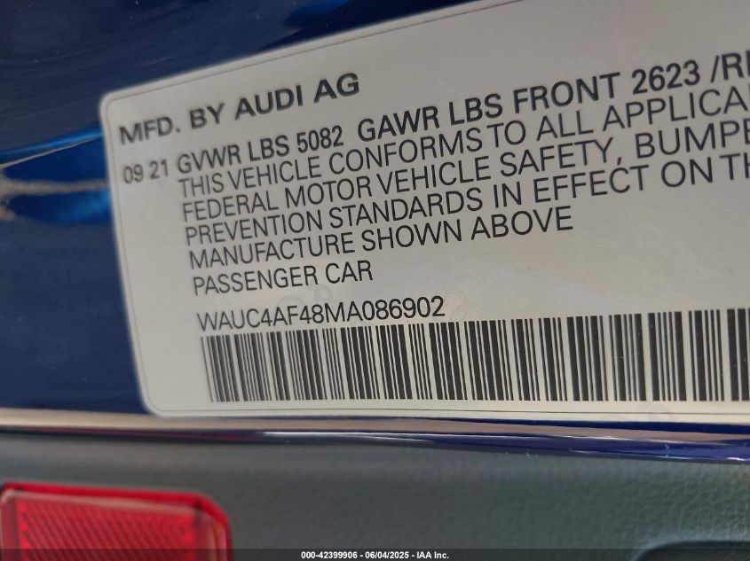 2021 AUDI S4 | WAUC4AF48MA086902