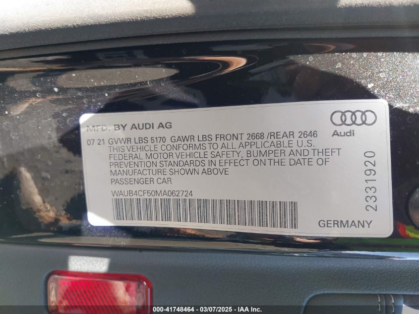 2021 AUDI S5 | WAUB4CF50MA062724
