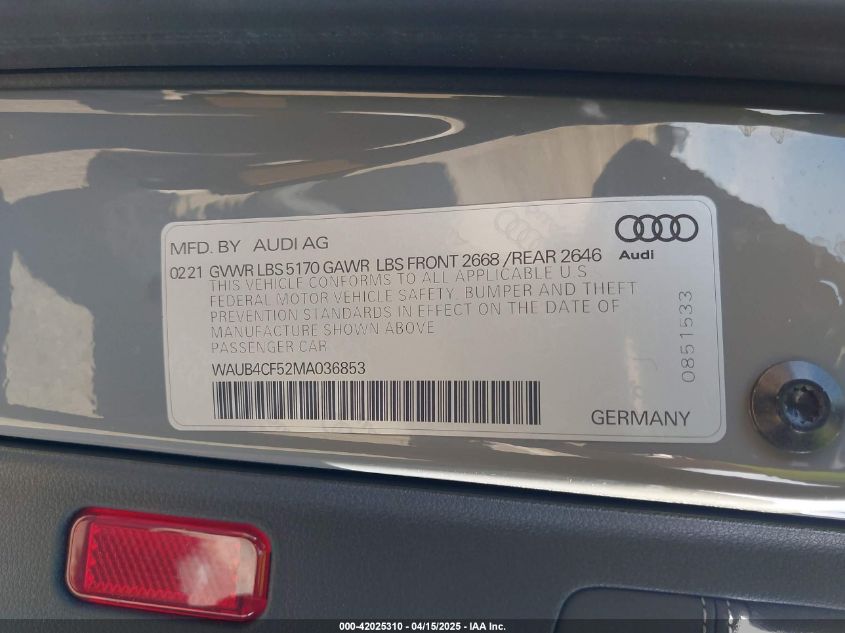 2021 AUDI S5 | WAUB4CF52MA036853