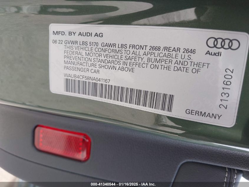 2022 AUDI S5 | WAUB4CF58NA041167