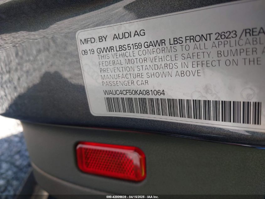 2019 AUDI S5 | WAUC4CF50KA081064