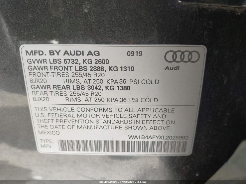 2020 AUDI SQ5 | WA1B4AFYXL2025992