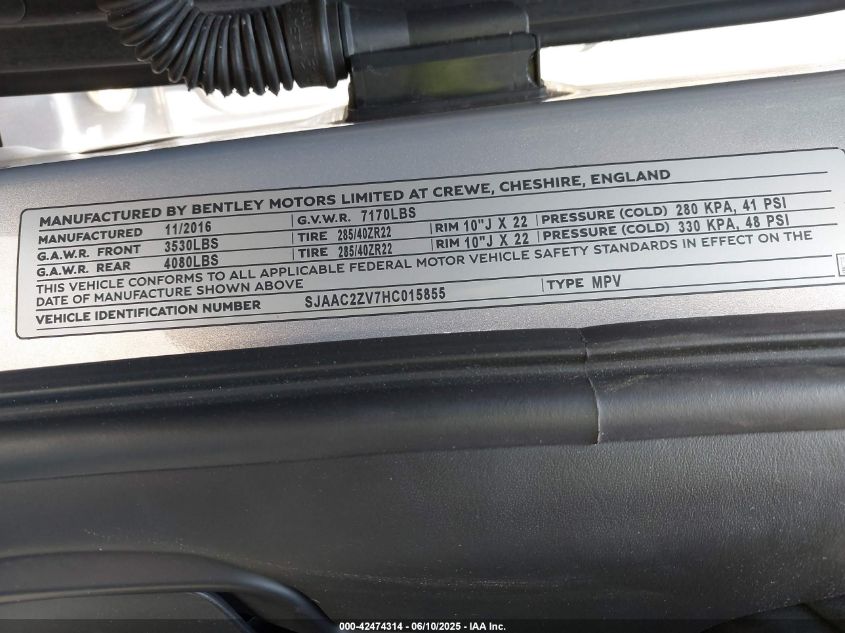 2017 BENTLEY BENTAYGA | SJAAC2ZV7HC015855