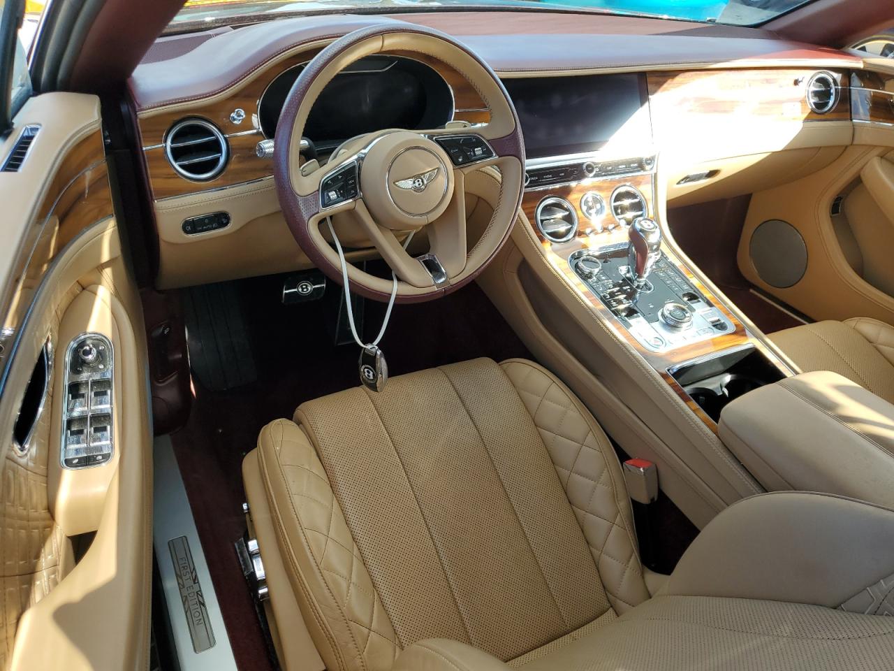 Inside, the cabin is handcrafted with exceptional attention to detail. Standard interior materials include Beluga, Cricket Ball, and Linen hides, but customers can select from an almost limitless range through Bentley’s personalization program. Cross-stitched Nappa leather, diamond-in-diamond quilting, perforated hides with contrast piping, and embroidered Bentley logos all elevate the experience. Veneers include Piano Black, Crown Cut Walnut, Dark Stained Burr Walnut, Carbon Fiber, and even natural stone. Ambient lighting and laser-cut metal overlays in the dashboard further enhance the cabin’s bespoke ambiance.