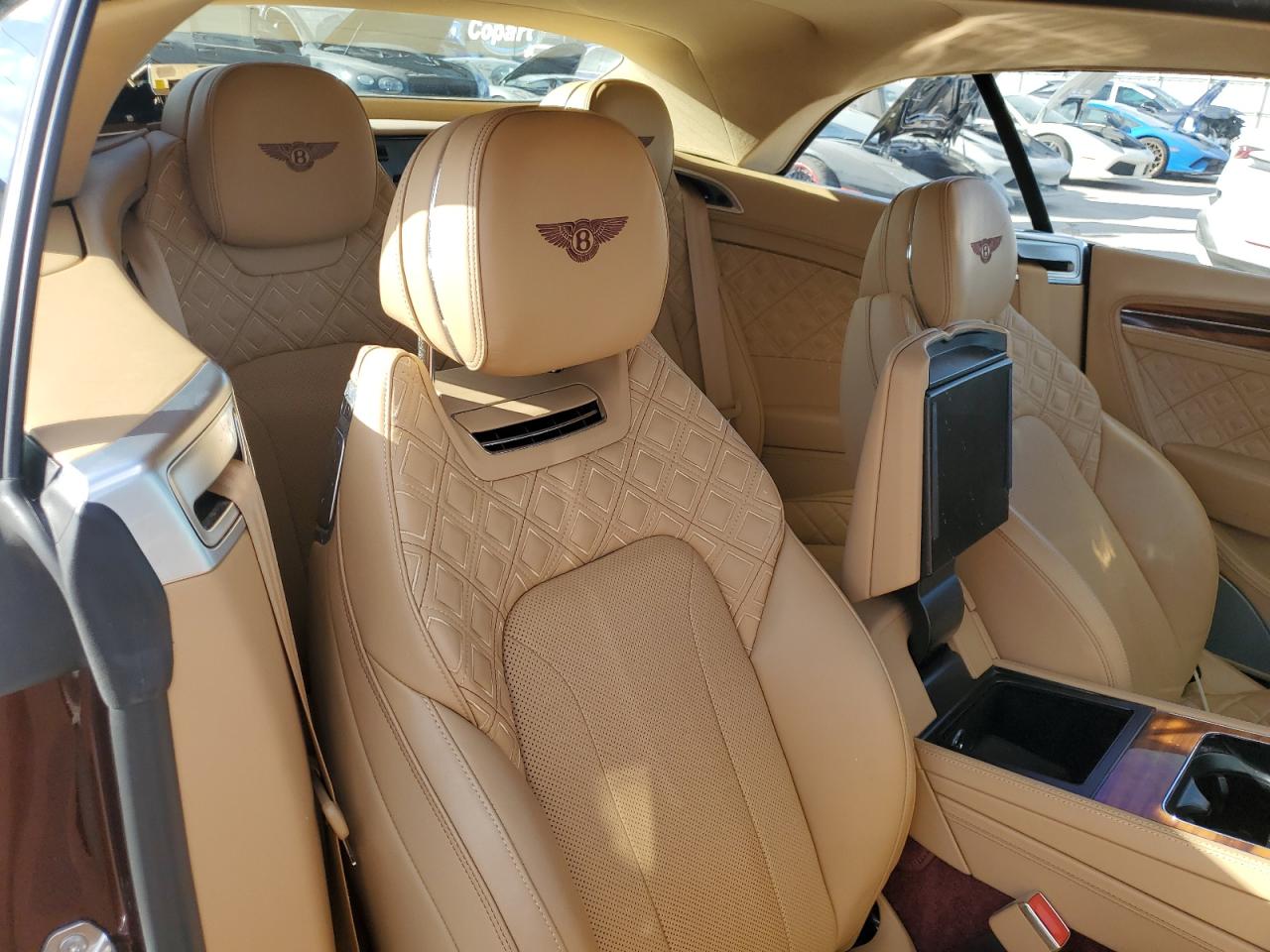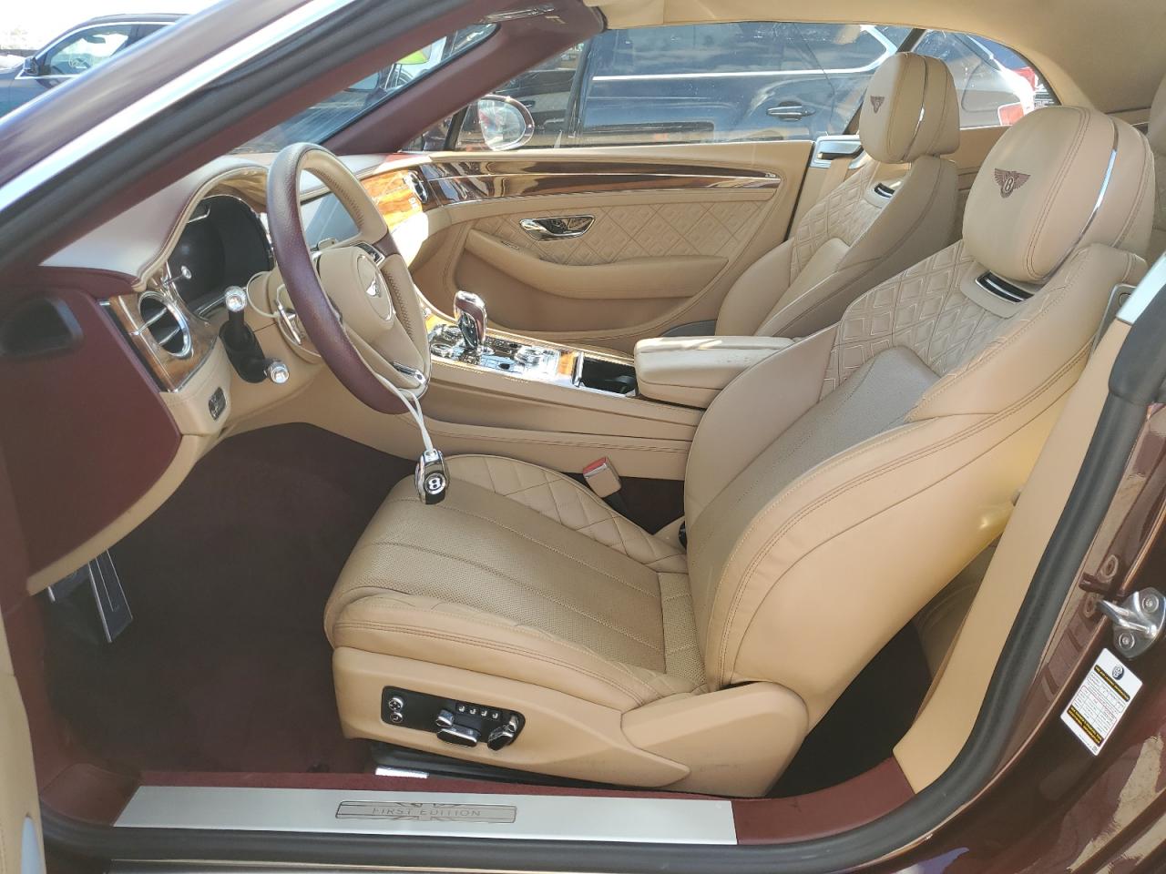 The Bentley Rotating Display is a unique centerpiece — rotating between a 12.3" touchscreen, three analog gauges, and a wood veneer panel. Seat options include 22-way adjustment, ventilation, massage, and neck warmers in the convertible. Audio choices top out with the Naim 2,200W 18-speaker system.