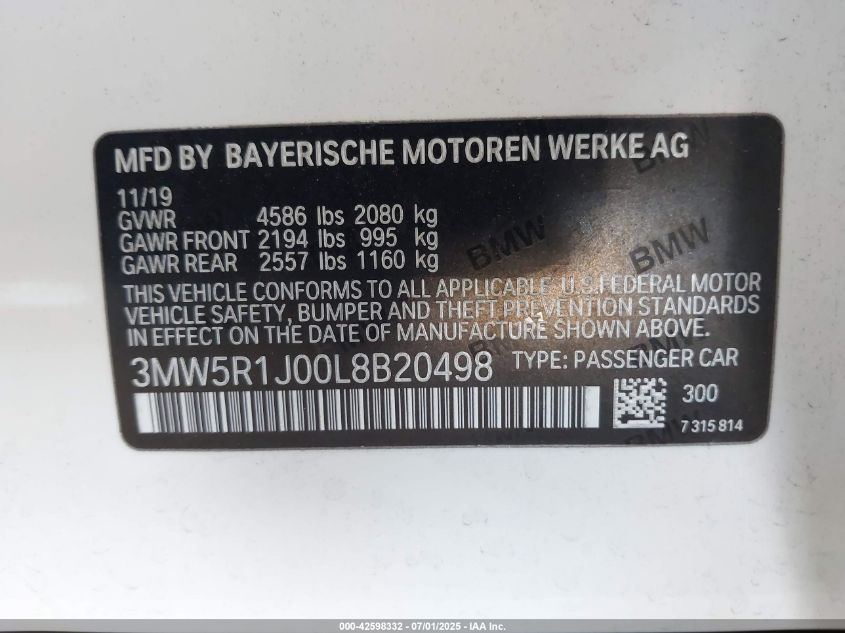 2020 BMW 330I | 3MW5R1J00L8B20498