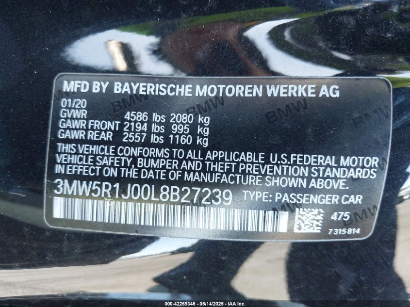 2020 BMW 330I | 3MW5R1J00L8B27239