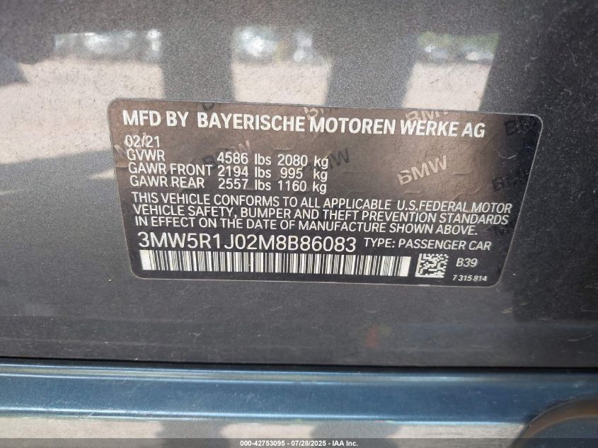 2021 BMW 330I | 3MW5R1J02M8B86083