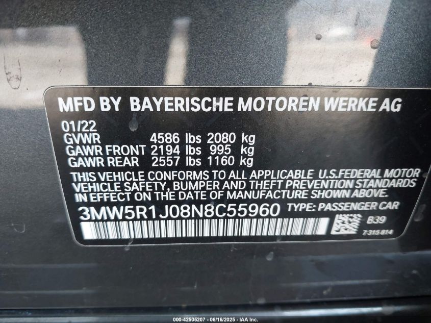 2022 BMW 330I | 3MW5R1J08N8C55960
