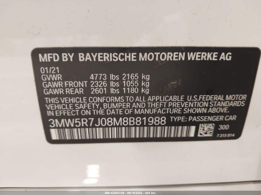 2021 BMW 330I | 3MW5R7J08M8B81988