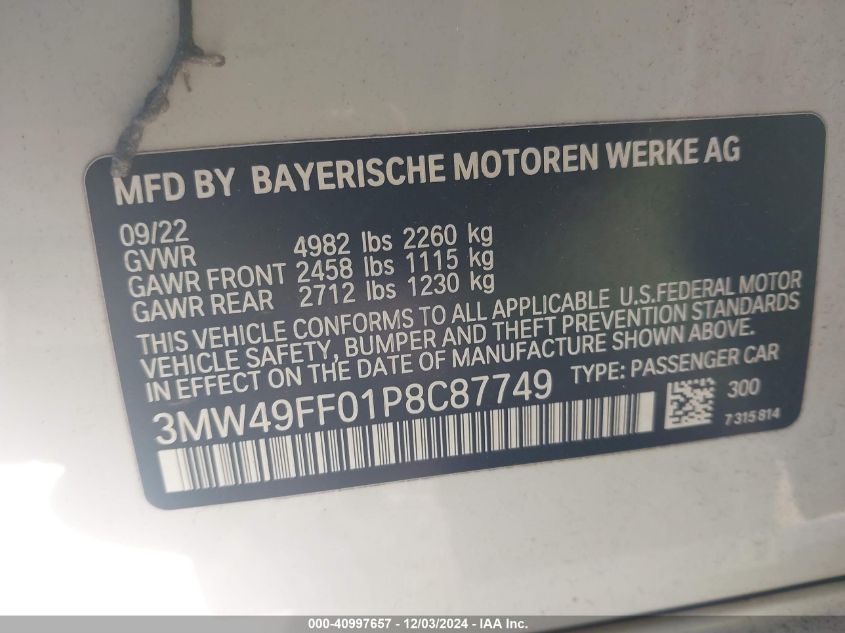 2023 BMW 340I | 3MW49FF01P8C87749