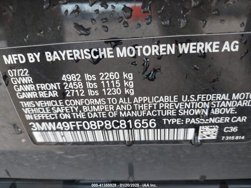 2023 BMW 340I | 3MW49FF08P8C81656