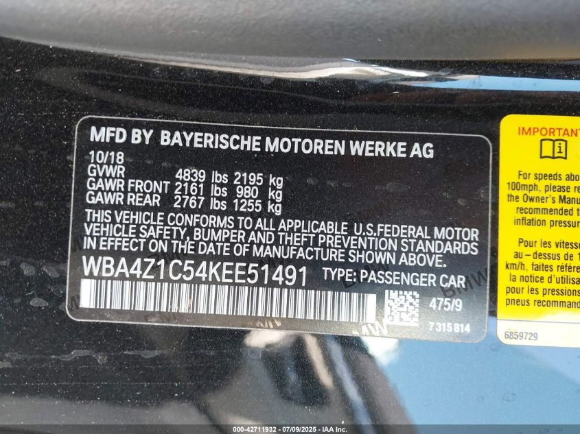 2019 BMW 430I | WBA4Z1C54KEE51491