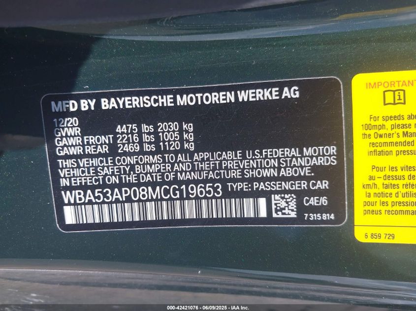 2021 BMW 430I | WBA53AP08MCG19653