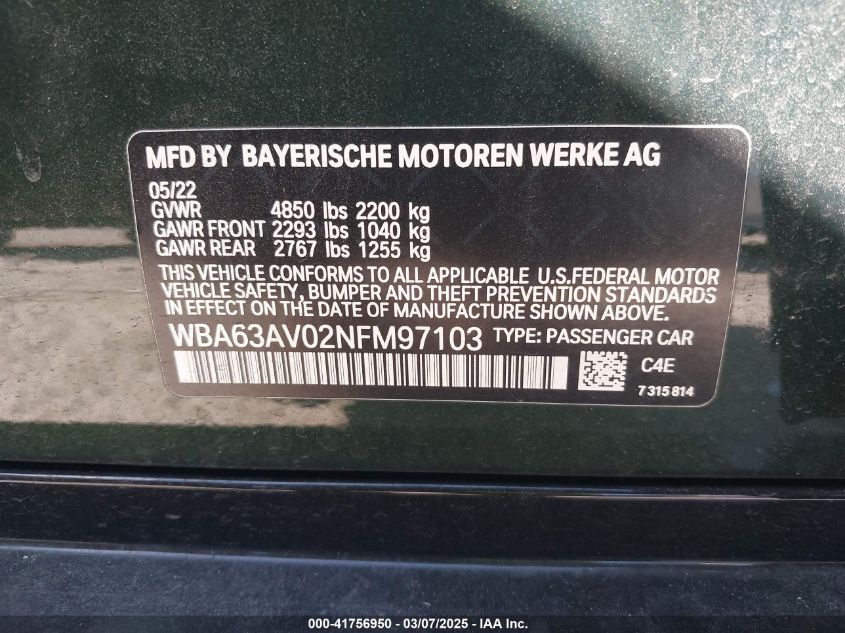 2022 BMW 430I | WBA63AV02NFM97103