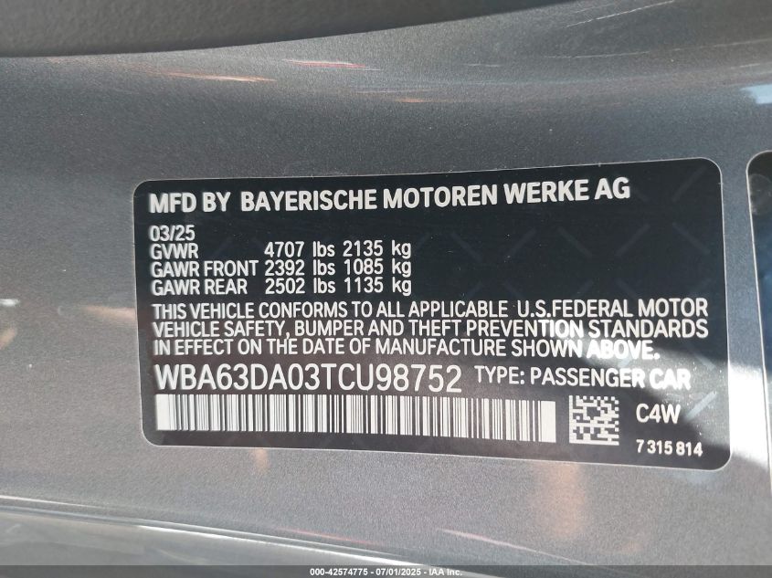 2026 BMW 430I | WBA63DA03TCU98752
