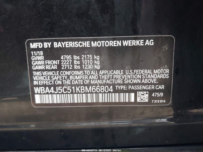 2019 BMW 440I | WBA4J5C51KBM66804