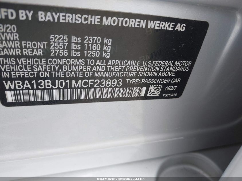 2021 BMW 530I | WBA13BJ01MCF23893