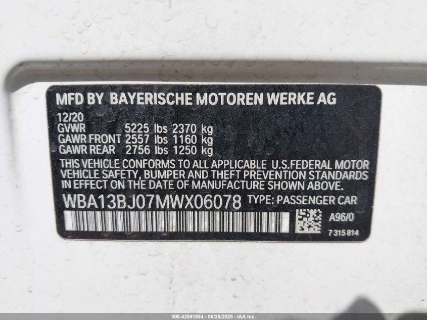 2021 BMW 530I | WBA13BJ07MWX06078