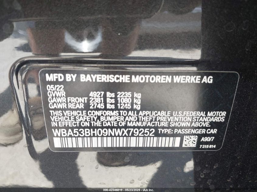 2022 BMW 530I | WBA53BH09NWX79252