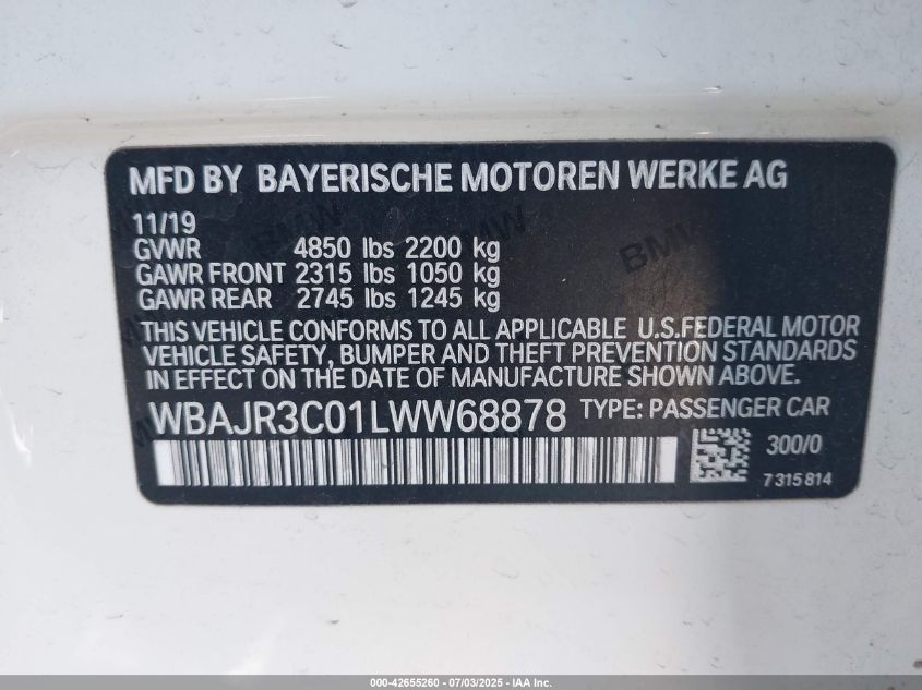 2020 BMW 530I | WBAJR3C01LWW68878