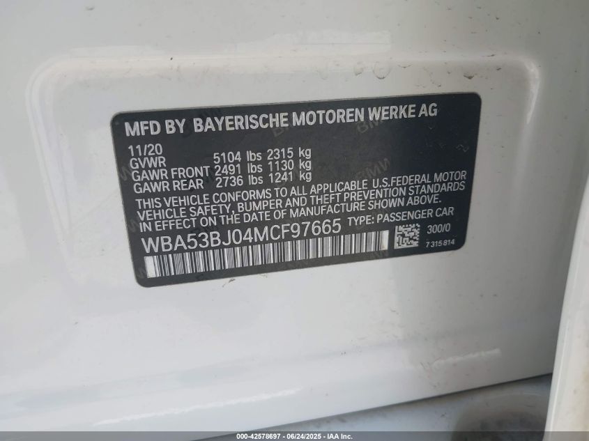 2021 BMW 540I | WBA53BJ04MCF97665