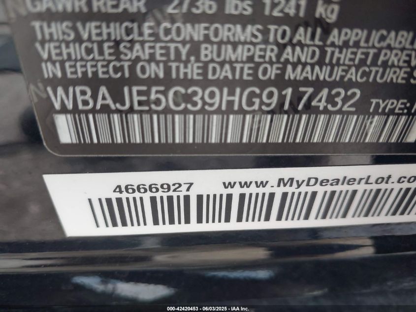 2017 BMW 540I | WBAJE5C39HG917432