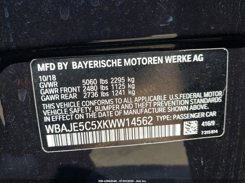 2019 BMW 540I | WBAJE5C5XKWW14562
