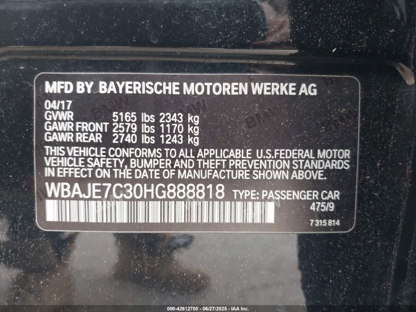 2017 BMW 540I | WBAJE7C30HG888818