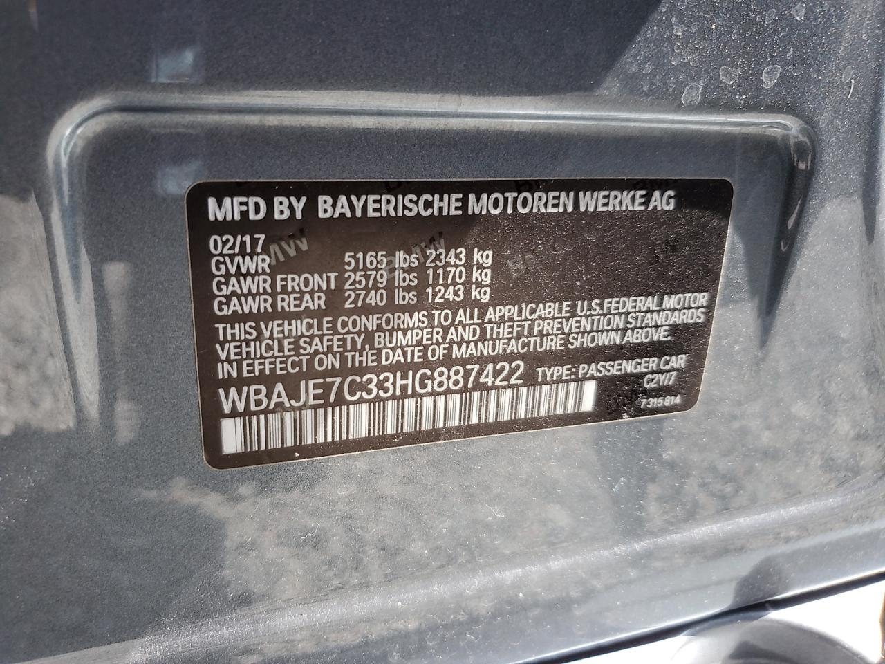 2017 BMW 540I | WBAJE7C33HG887422