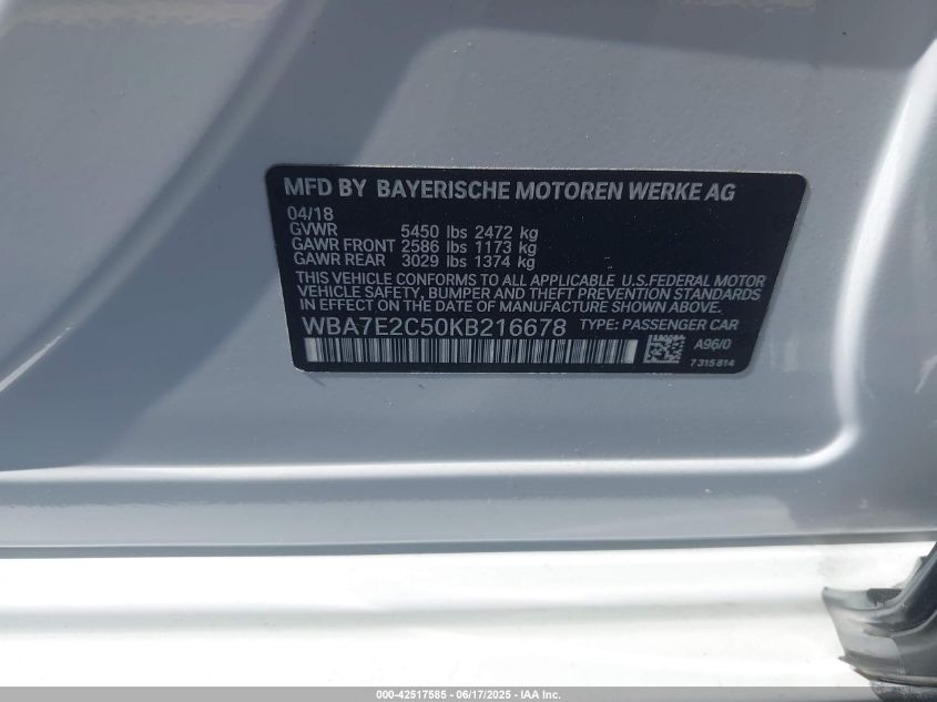 2019 BMW 740I | WBA7E2C50KB216678