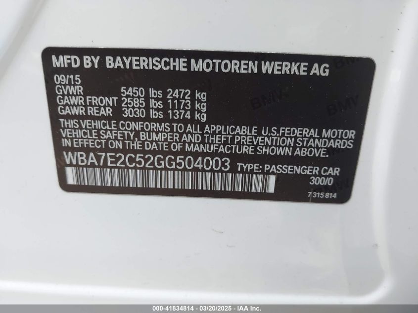 2016 BMW 740I | WBA7E2C52GG504003