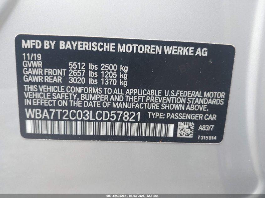 2020 BMW 740I | WBA7T2C03LCD57821