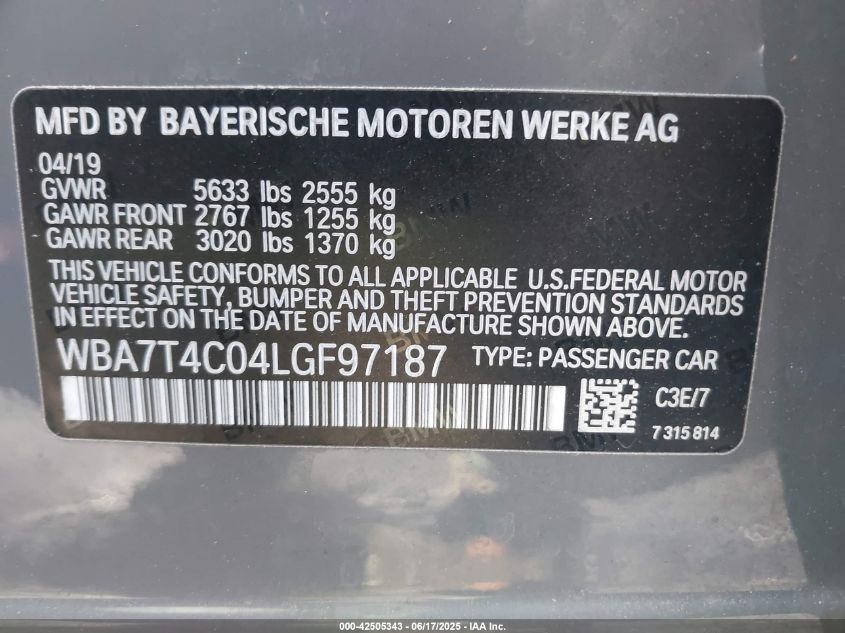 2020 BMW 740I | WBA7T4C04LGF97187