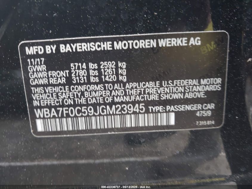 2018 BMW 750I | WBA7F0C59JGM23945