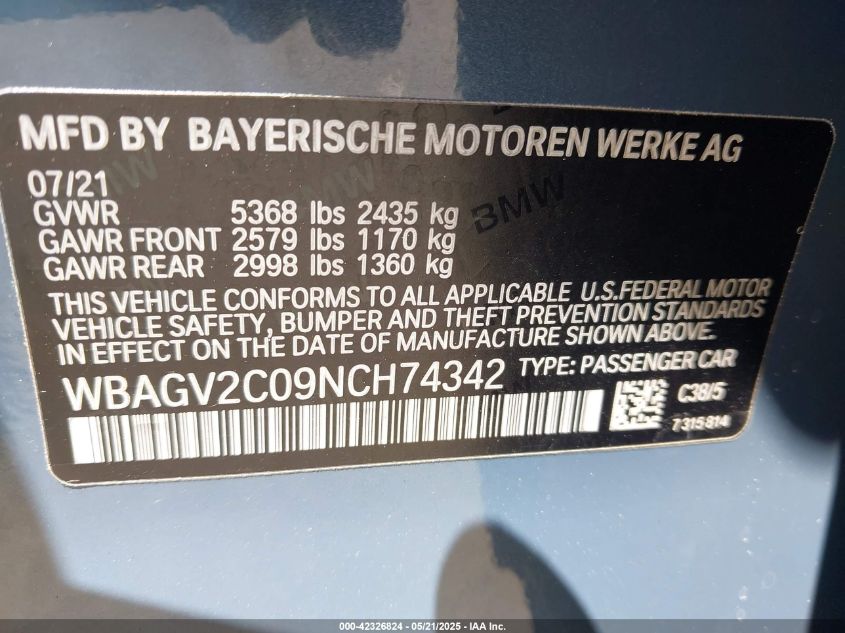 2022 BMW 840I | WBAGV2C09NCH74342