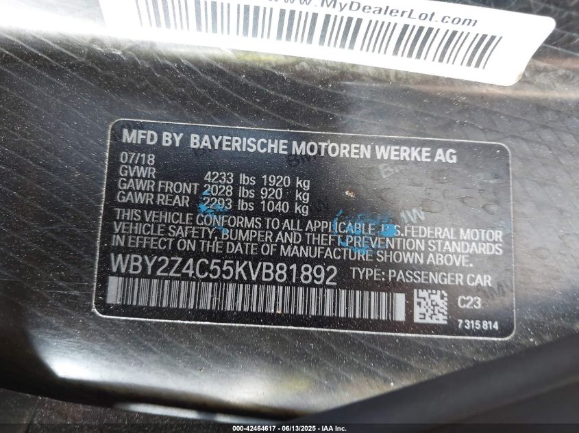 2019 BMW I8 | WBY2Z4C55KVB81892