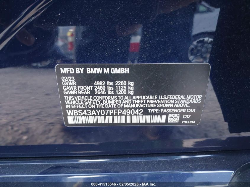 2023 BMW M3 | WBS43AY07PFP49042