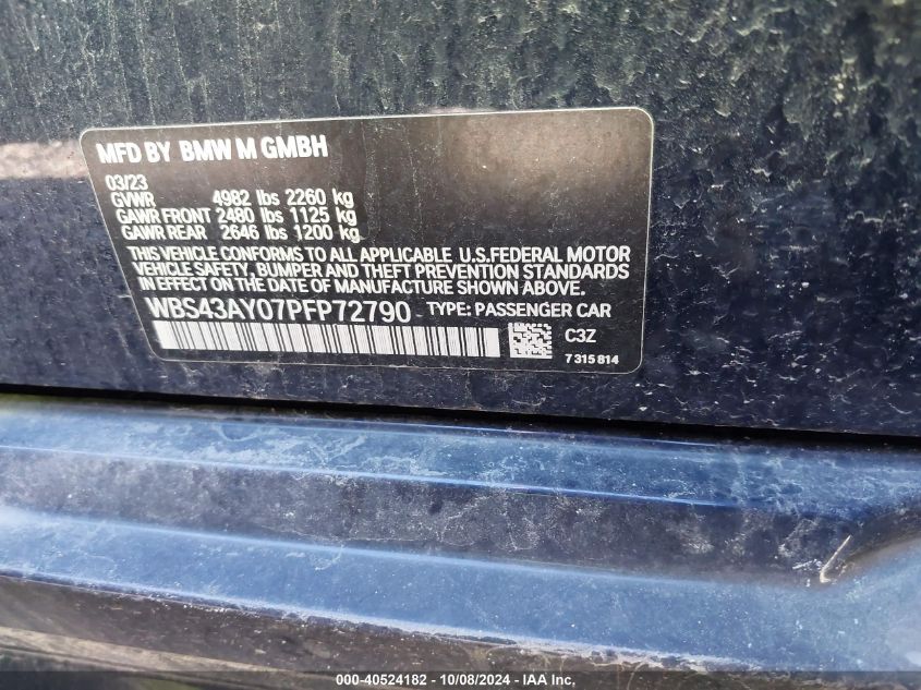 2023 BMW M3 | WBS43AY07PFP72790