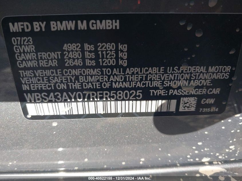 2024 BMW M3 | WBS43AY07RFR58025