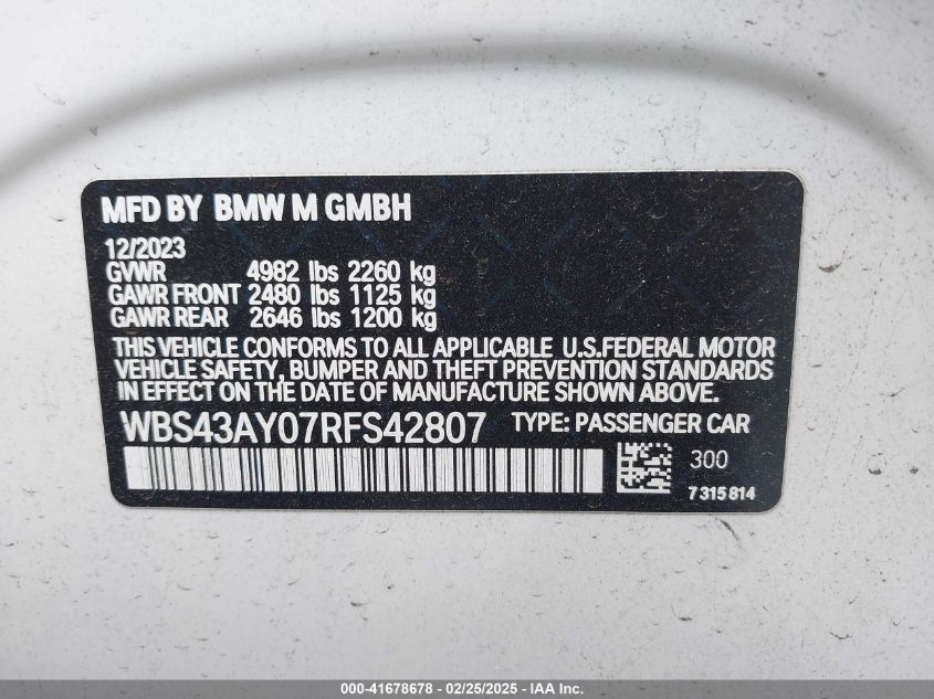 2024 BMW M3 | WBS43AY07RFS42807