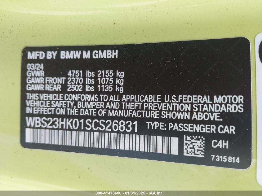 2025 BMW M4 | WBS23HK01SCS26831