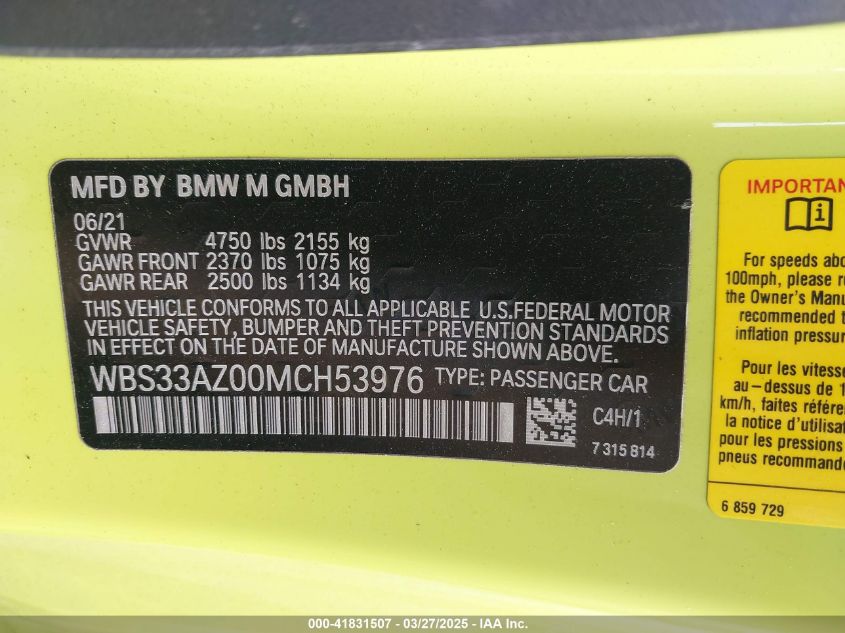 2021 BMW M4 | WBS33AZ00MCH53976