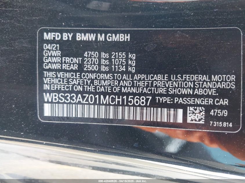 2021 BMW M4 | WBS33AZ01MCH15687