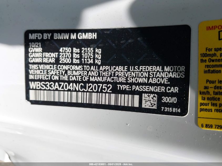 2022 BMW M4 | WBS33AZ04NCJ20752