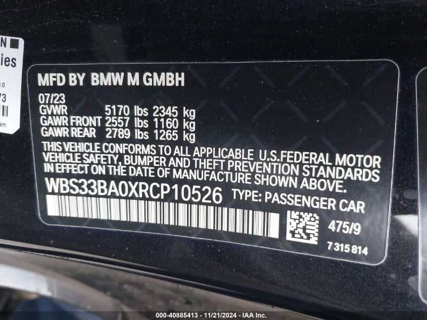 2024 BMW M4 | WBS33BA0XRCP10526