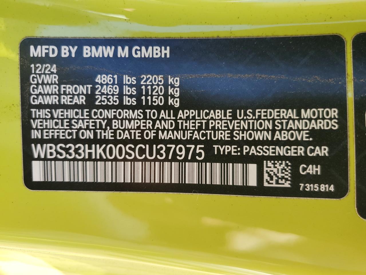 2025 BMW M4 | WBS33HK00SCU37975